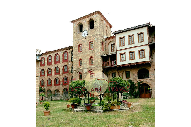 Η Ιερά Μονή Ξηροποτάμου, είναι η όγδοη (8η) στην ιεραρχική τάξη των Αγιορείτικων Μονών. Ιδρύθηκε από τον μοναχό Παύλο Ξηροποταμινό, που μόνασε την εποχή του Οσίου Αθανασίου του Αθωνίτη, (τέλη του 10ου αιώνα). Το καθολικό είναι αφιερωμένο στους Τεσσαράκοντα Μάρτυρες. Το σπουδαιότερο κειμήλιο που φυλάσσεται στη μονή, είναι το μεγαλύτερο τεμάχιο Τιμίου Ξύλου, που υπάρχει στον κόσμο, (μήκος 31 εκατοστά, πλάτος 16 και πάχος 25 εκατοστά, δώρο του αυτοκράτορα Ρωμανού A', ή της Αυτοκράτειρας Πουλχερίας). Φυλάσσονται επίσης, μέρος από τα δώρα των 3 Μάγων, τμήμα από τον Ακάνθινο Στέφανο, τον Σπόγγο και τη Χλαμύδα. Σε λειψανοθήκες, βρίσκονται τα λείψανα εξήντα ενός Αγίων. Άλλο σημαντικό κειμήλιο είναι ο δίσκος τής Πουλχερίας. Συνολικά στη μονή, υπάρχουν 16 παρεκκλήσια, ενώ οι εγκαταβιούντες εντός του κοινοβίου, μαζί με τα κελιά, είναι περίπου 25 μοναχοί. Κατά το προσκύνημα μας στη ιερά μονή, μας φίλεψαν υπέροχες τηγανίτες με πετιμέζι.
